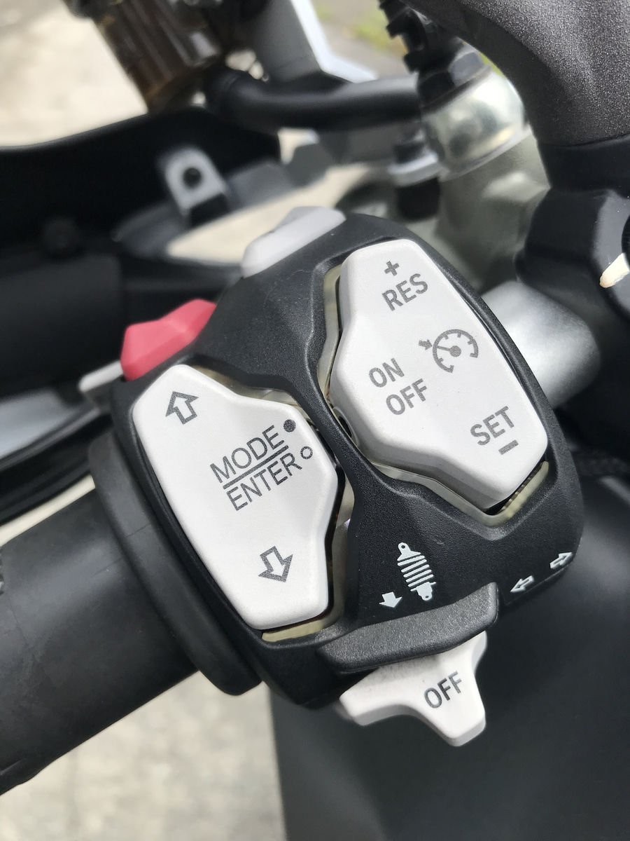 「MODE/ENTER」と書いてあるボタンでモードを選んだり、パネルの表示形式を変えたりする。サスセッティングやエンジンのセッティングなども細かく設定できる。
