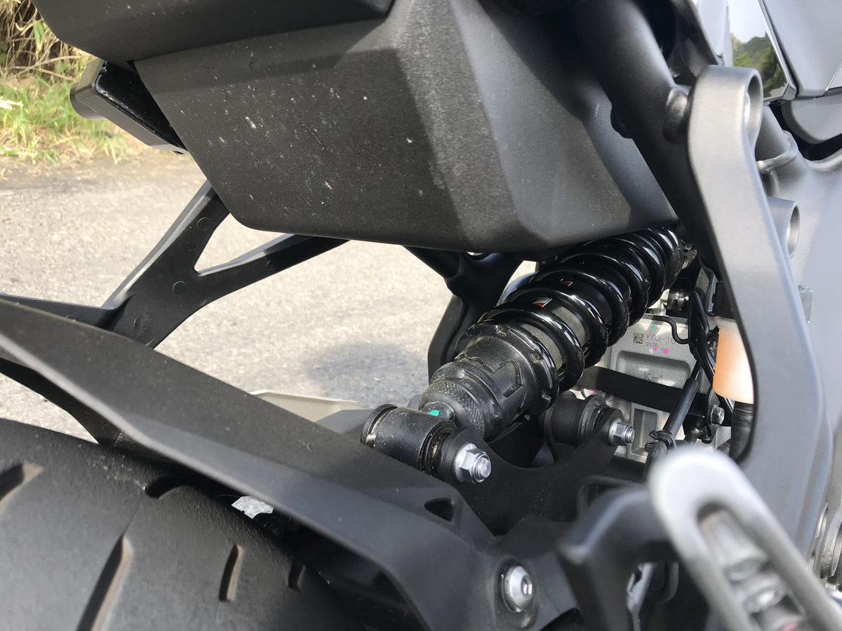 カワサキお得意のホリゾンタルバックリンクサス。作動良好。